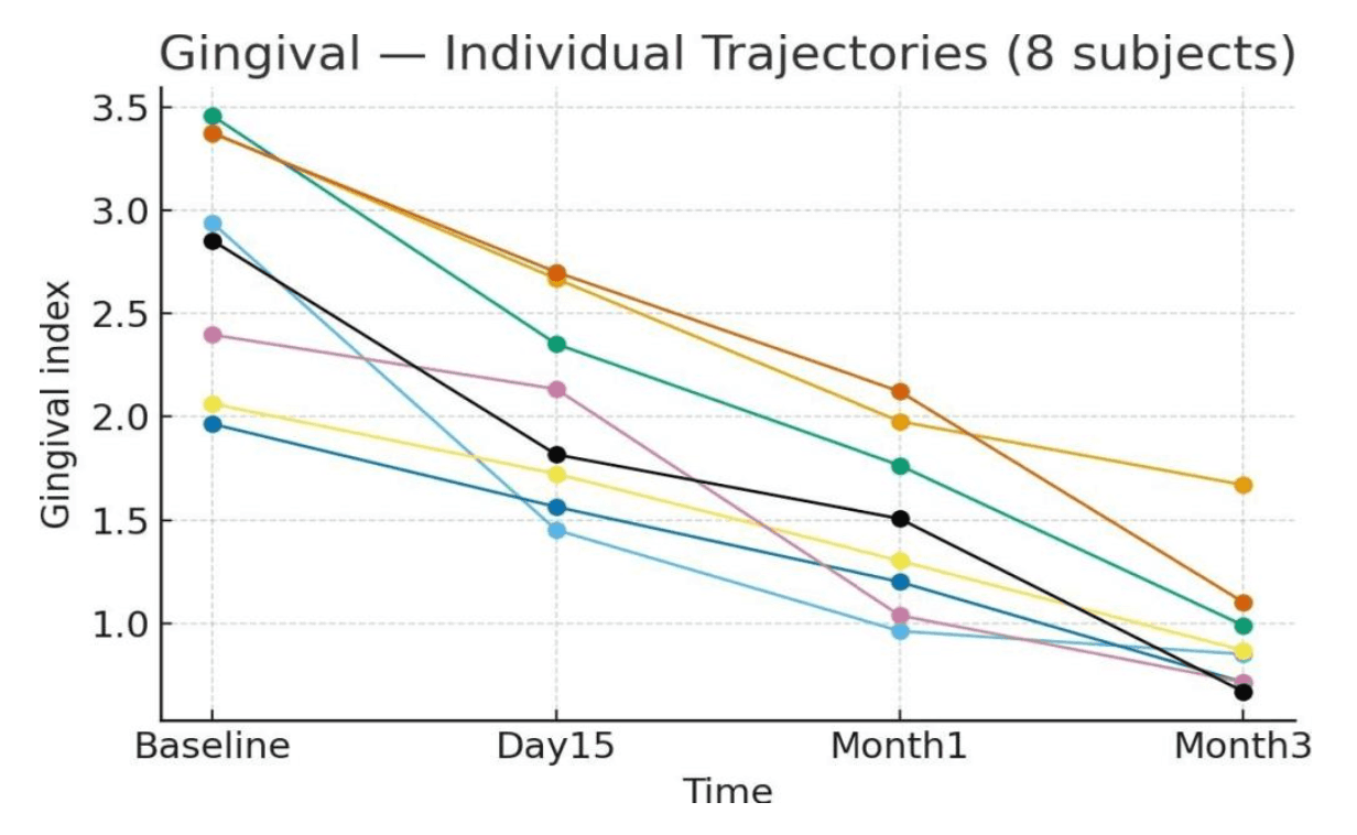 Figure 4: Individual trajectories (sample of 8 subjects) — Gingival