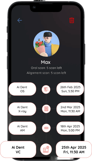 All consultation records, scans, and notes are securely added to the patient’s dental timeline for continuity of care and follow-ups.